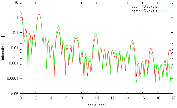 of 230x230x200 voxels bounded by simple absorbing boundary conditions. A plane wave source