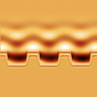 A height field representing the grating is centered in the parallelepiped. Linear material is used to introduce height field, i.e. values